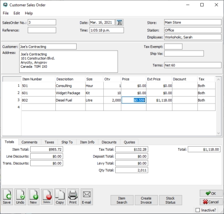 Create sales orders for your customers with firm prices and expiry dates. Use Quasar's direct email function to email a copy of an order directly to the customer in PDF format. When the customer is ready to receive the product, the order can be used to generate a customer invoice..